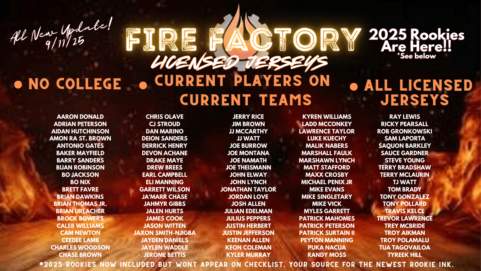 Autographed Football Licensed Jersey. Now featuring a 100 Player Checklist!